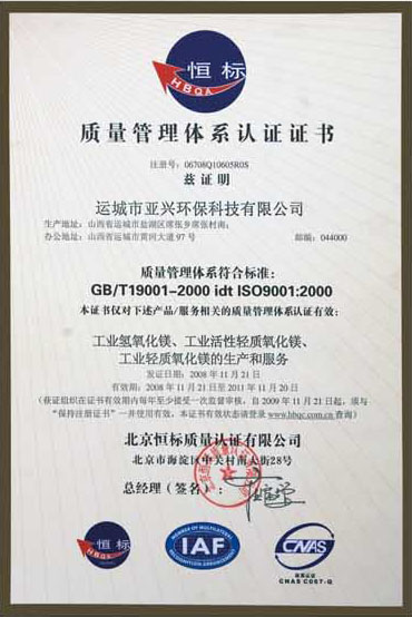 本公司有嚴格的質量保證體系,從鹽湖鹵水的養護調試,到生產過程中的每一道工序,都有嚴格的指標控制。利用天然鹽湖的鎂資源,再加上先進的工藝以及全不銹鋼設備為保證,使生產的各種鎂合物產品均能達到國家行業標準要求。